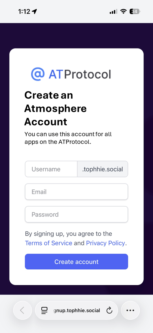 Make this "tophhie.social" piece a drop-down. Choices are account providers with open access.